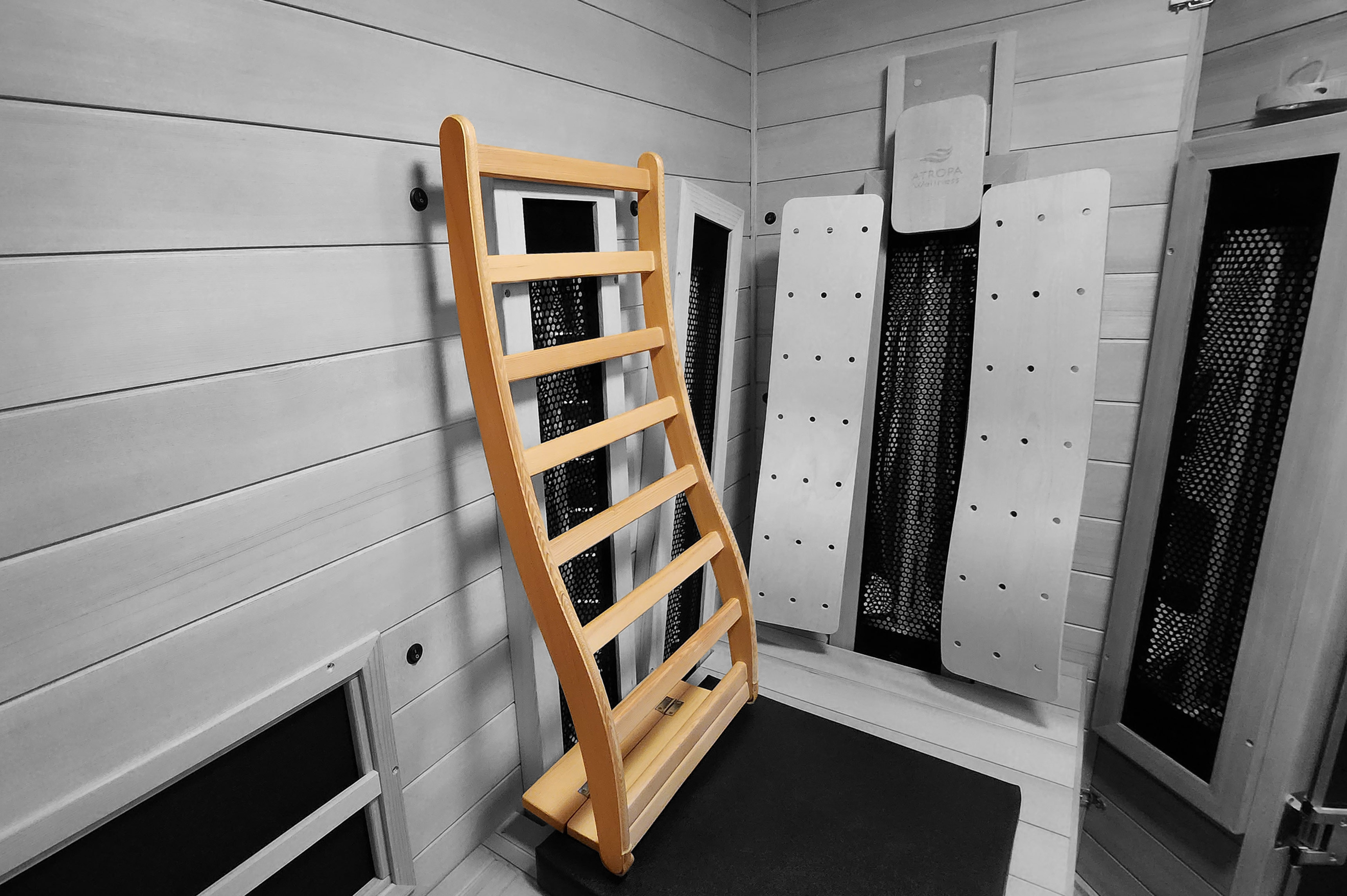 The mobile ergonomic backrest is not only comfortable, but also relieves the spine. Especially in infrared saunas without a fixed or flexible ergonomic backrest, it supports a relaxed sauna experience. The inclination can be easily adjusted to your own needs.